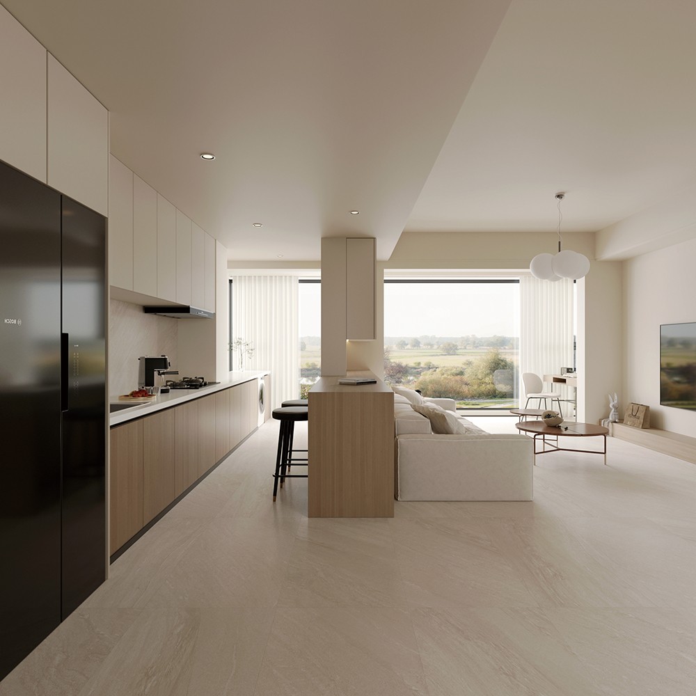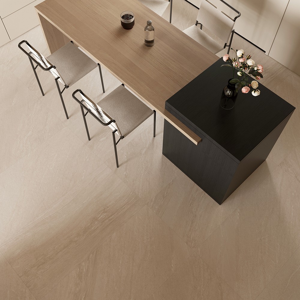 色泽清雅古朴,散发着岁月的韵味,纹理如同风雨侵蚀下形成的独特地貌,流畅而富有变化。米黄色的基调营造出轻松和平静的氛围。