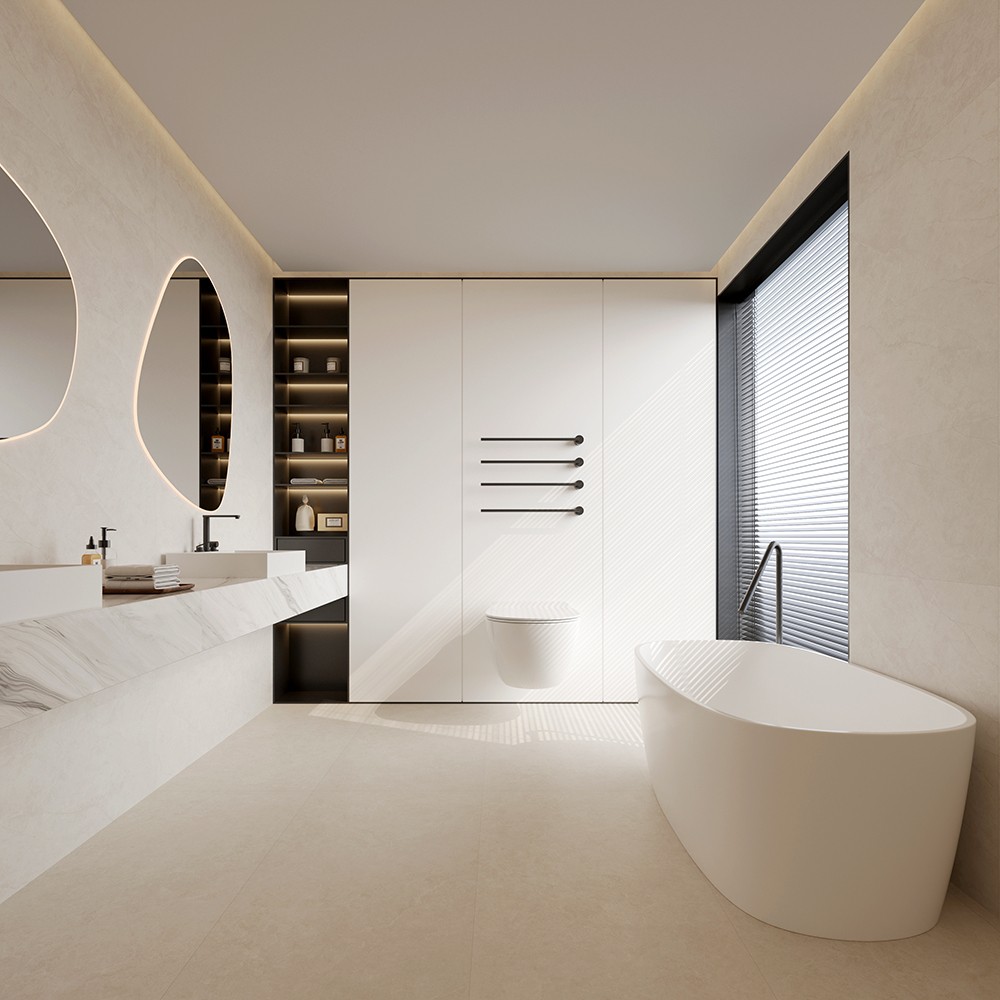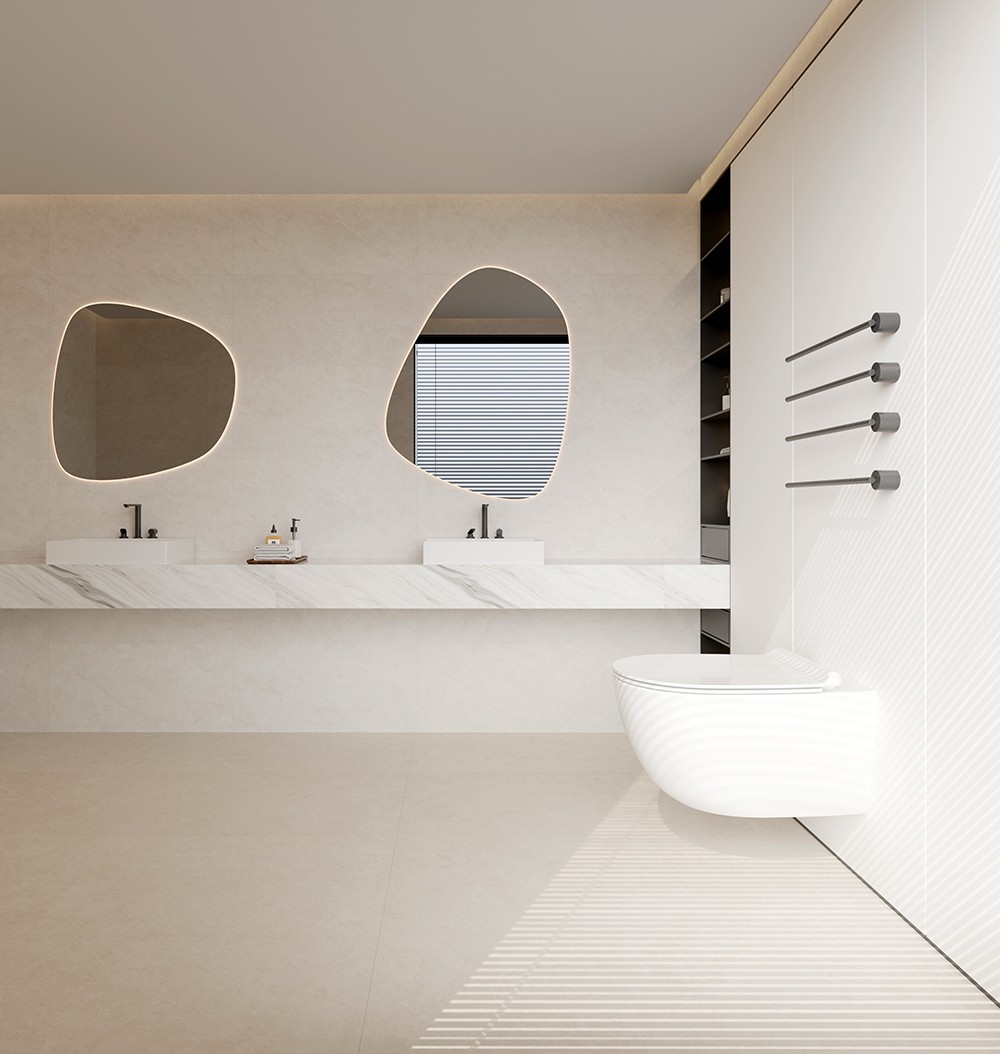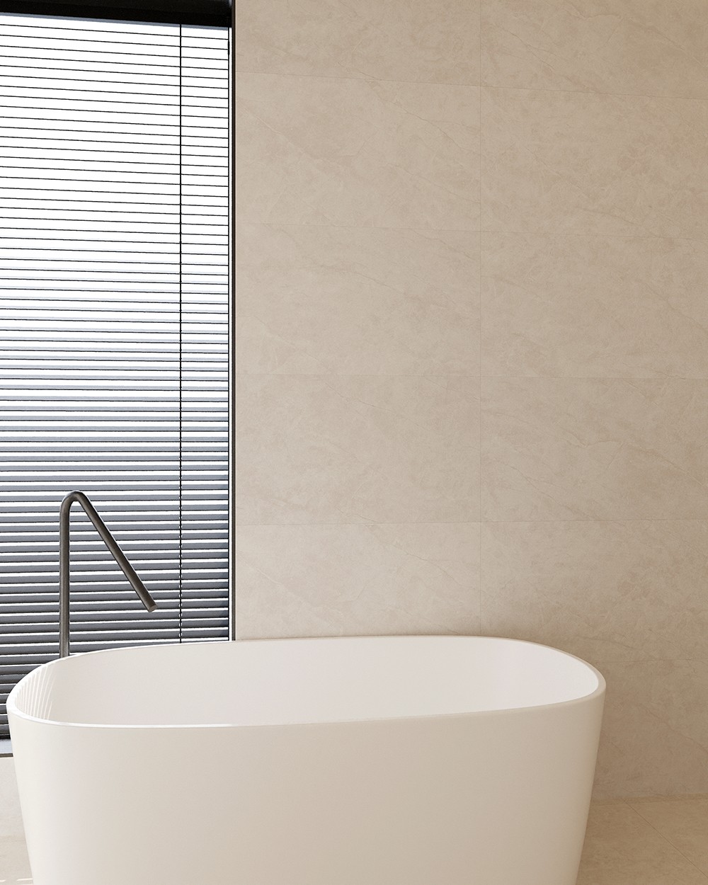 以灰白为底色,巧妙地利用浅灰色线条在砖面上勾勒出纵横交错的纹理,仿佛山脉延绵的自然曲线,既流畅又充满韵律感。