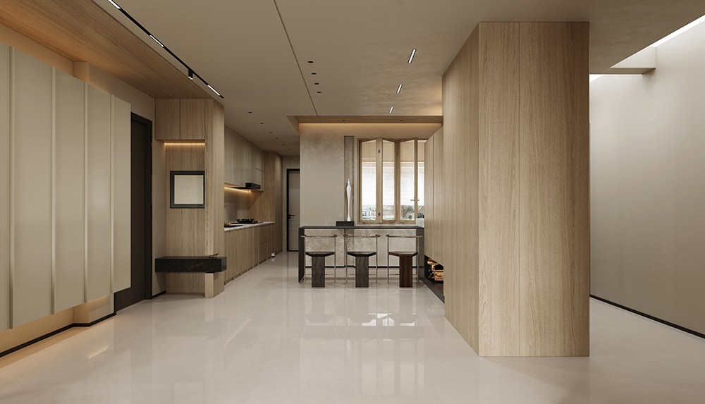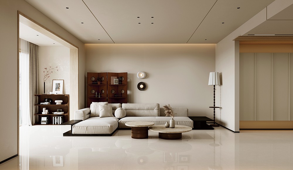 以极简的素色质感为基调,米灰色底中隐约显现柔和的自然细纹,其细腻纹理仿若微风轻拂水面,泛起微微涟漪。