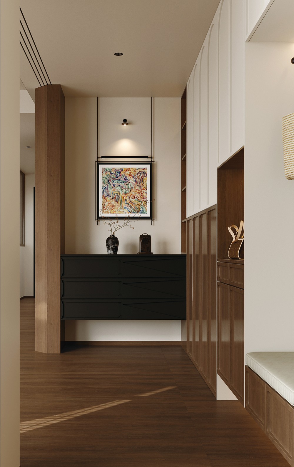 深邃如暮色森林,仿若夜色轻笼林谷,深栗底色中透出细腻木纹,低调静谧,尽显优雅。